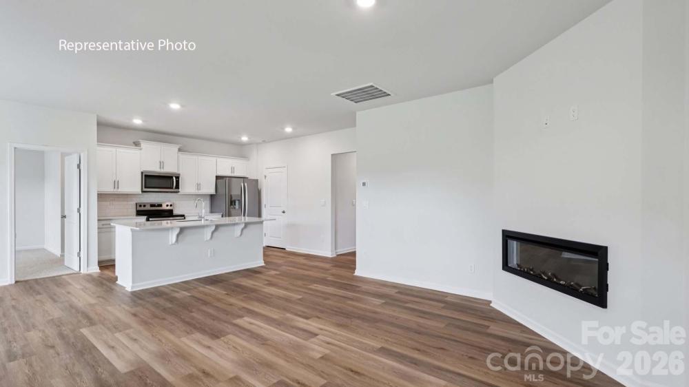 Hampshire plan offers formal dining room open to the butler's pantry and large walk-in pantry closet. The kitchen has an island that has pendant lights with Quartz countertop with subway backsplash. Chef's Kitchen includes gas whirlpool appliance package Stainless includes gas cook top, built in dishwasher, microwave and double wall ovens electric. Living room has a gas fireplace. Main flooring areas has extended Revwood flooring in main areas. First floor ceiling height 9ft with decorative molding two piece crown throughout first floor living area. Breakfast area looks out to the patio through the glass sliding doors. This home has a bedroom on the main level off the living room and steps away from the full bath down from the entry to the garage. The stairs are off the kitchen with open rails . Upstairs offers an open loft area off the primary suite with tray ceiling and sitting room with a spacious walk in closet.
