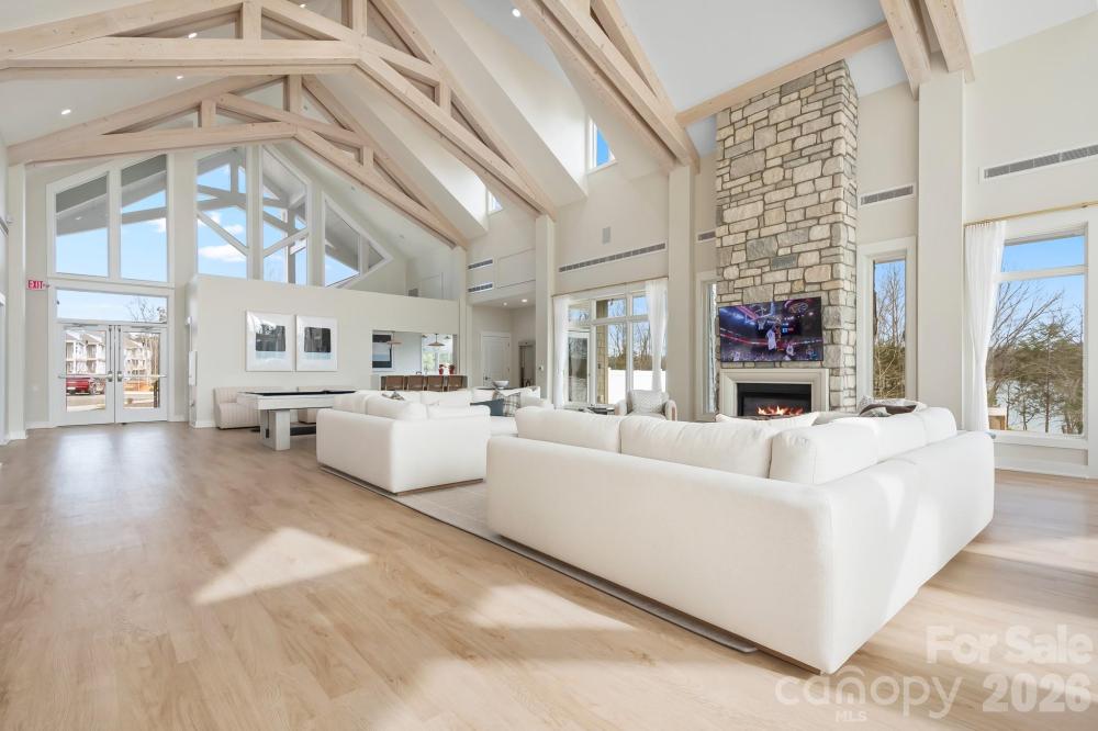 Start your lake life now in Lakeside Pointe, one of Lake Norman’s newest and most desirable lakefront communities. This gorgeous like-new Seaglass floorplan delivers coastal-inspired luxury and elevated designer finishes without the wait of new construction. A dramatic two-story great room and dining area are filled with natural light and open sightlines, creating an airy, welcoming atmosphere. The main level features a serene primary suite with a spa-inspired bath, along with a flexible office or guest bedroom with a full bath, providing adaptable space to suit a variety of lifestyles. A chef-inspired kitchen with high-end designer finishes flows seamlessly into the living areas, ideal for effortless entertaining. Upstairs, two additional bedrooms each offer private baths, while a loft provides inviting nooks for reading, relaxing, or working from home. Storage is exceptional with walk-in closets, a walk-in attic, an extra storage room, and a two-car tandem garage. Covered front and rear porches complete the relaxed lake-home feel. Just a short stroll away, a stunning lakefront amenity complex sits on a peninsula with breathtaking water views, featuring an elegant clubhouse, fitness center, game room, and dramatic gathering spaces opening to terraces overlooking the pool and lake. Multiple waterfront lounge areas and fire pits create inviting spaces to relax and connect, with future private boat slips and community kayak and paddleboard launch space. Proposed retail space to be built near the front of the community.