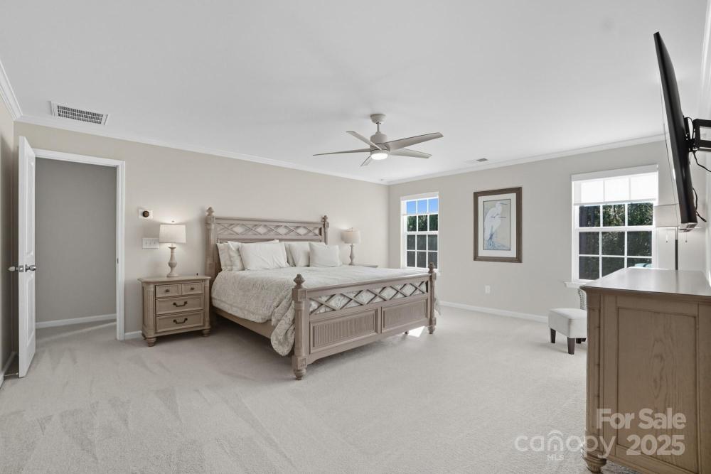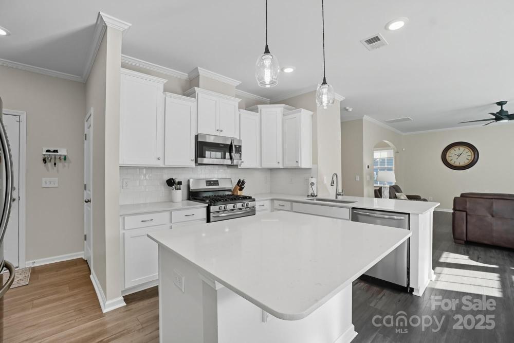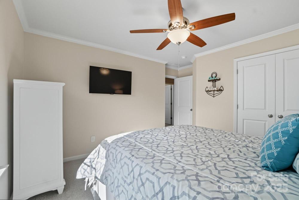 Experience the perfect blend of modern amenities and serene privacy in this immaculate, move-in-ready home located in one of the area’s most desirable communities — just minutes from Lake Norman, shopping, dining, and I-77. Step inside and you’ll immediately notice the fresh, inviting interior with upgraded luxury vinyl plank flooring, new carpet upstairs, and fresh paint inside, outside, and in the garage. The open-concept layout creates a seamless flow from the living area into a gourmet kitchen featuring a large island, walk-in pantry, and upgraded closet systems for easy organization. Enjoy comfort and elegance throughout with crown molding in most rooms, upgraded lighting, and a smart front-door lock system. The spacious master suite features a professionally designed closet, while the laundry room includes custom cabinetry and a granite countertop. Step outside and fall in love with your private, fenced, tree-lined backyard — the ideal retreat for entertaining or relaxing. The extended patio is enhanced by custom motorized awnings with integrated lighting, providing both shade and ambiance at the touch of a button. Whether you’re enjoying your morning coffee or hosting evening get-togethers, this space truly extends your living area outdoors. Beyond your backyard oasis, the community itself offers a resort-style lifestyle. The zero-entry pool with fountains, modern fitness center, clubhouse, and playground are just steps away — in fact, the pool is right across the street! You’ll love the friendly atmosphere fostered by the neighborhood’s active social committee, offering a perfect balance between vibrant community living and personal privacy. This home has been thoughtfully upgraded and meticulously maintained: * New paint – interior, exterior, and garage * Crown molding throughout most of the home * Closet systems in the primary suite and pantry * Custom laundry upgrade with cabinets and granite countertop * Upgraded LVP flooring on main level and newer carpet upstairs * Custom motorized, lit awnings over patio * Private, fenced, wooded lot * Upgraded smart front door lock * Termite bait station and active bond in place for peace of mind Community highlights include: * Zero-entry pool with fountains * Fitness center and clubhouse * Playground * Friendly, active social committee