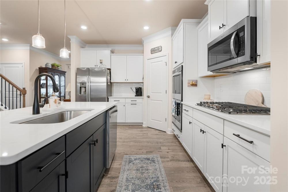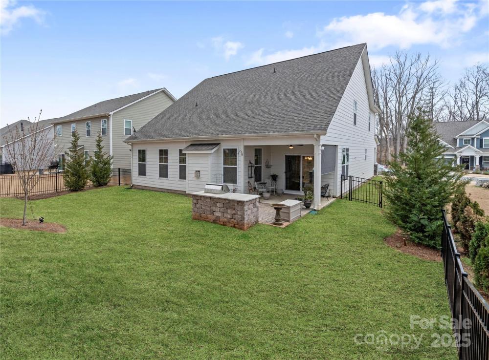 $5000 seller paid closing cost. Welcome to the the Enclave at Falls Cove. This almost new home still has a builders transferable warranty. The benefits of someone already doing what a new home doesn't have. This homes features beautiful landscaping. fenced back yard, and high end interior finishes. There is a front rocking chair front porch and a rear covered porch with a outdoor kitchen for entertainment. This is an open floor Plan with large rooms and a gourmet kitchen with large island for guest to gather around. The family room feature a gas fireplace to make your guests warm and cozy. The primary bedroom is conveniently located on the main level making it perfect for easy access. This is all manage by a smart home system allowing you the ability to control your home from anywhere.Conveniently located to Shopping, Healthcare and Lake Norman boat access.