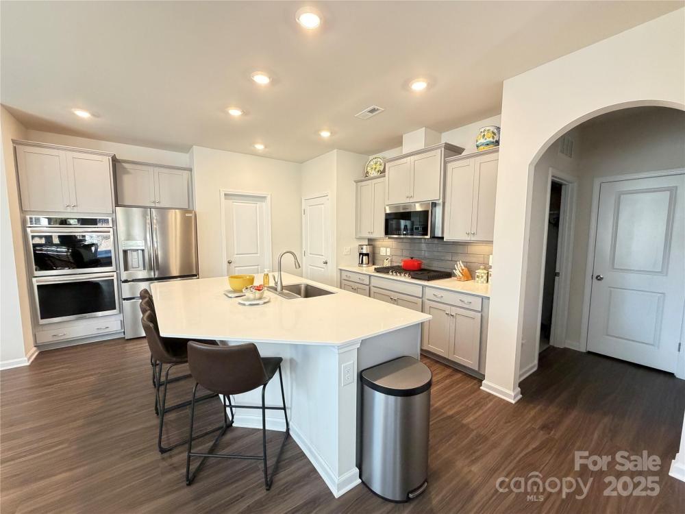 Master on main, 4.5’ black aluminum fenced yard w/6-ft gate, .34 acre lot w/140-ft rd front, 4 br/3.5 ba, study, master, family rm w/fp, gourmet kit w/double ovens, gas cooktop, frig, washer/dryer, blinds all windows, 6 ceiling fans, marble counters all bathrms, EVP stair overlay, oak railing w/iron balusters, EVP plank flooring main floor, 9-ft ceilings main, Sherwin-Williams paint, James Hardie cement siding, stone features, architectural shingles w/30-year warranty, Taexx pest control sys, LP Legacy premium sub flooring, Media enclosure in laundry rm, network data lines in kitchen, family rm, and study, power hub in kitchen w/4 USB ports, digital programmable thermostats. Upgrades include: Gourmet kitchen, Study, 6-light 3/4 chord glass insert fiberglass front door, fireplace with black granite, EVP plank flooring, tile backsplash, single bowl stainless steel undercount kitchen sink, EVP Peak stair overlay, oak stair railing with iron balusters, and lot premium. List available.