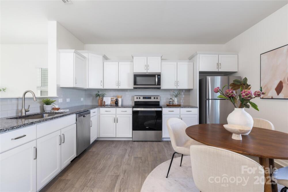 Move-in ready and beautifully maintained 4 BR / 2.5 BA home in the desirable Sutter’s Mill community of Troutman, NC! With over 2,000 sq ft of comfortable living space, this home features upgraded lighting throughout and a flexible main-level room ideal for work or leisure, plus a modern eat-in kitchen with granite countertops, stainless steel appliances—including refrigerator—and plenty of storage. Upstairs you'll find a spacious primary suite with attached bath, convenient laundry with washer and dryer, three additional well-sized bedrooms, and a full hall bath. Enjoy the charm of Sutter’s Mill with sidewalks and green spaces, just minutes from Lake Norman, Troutman ESC Park, local dining, shopping, and I-77 for easy access to Mooresville and Charlotte.
