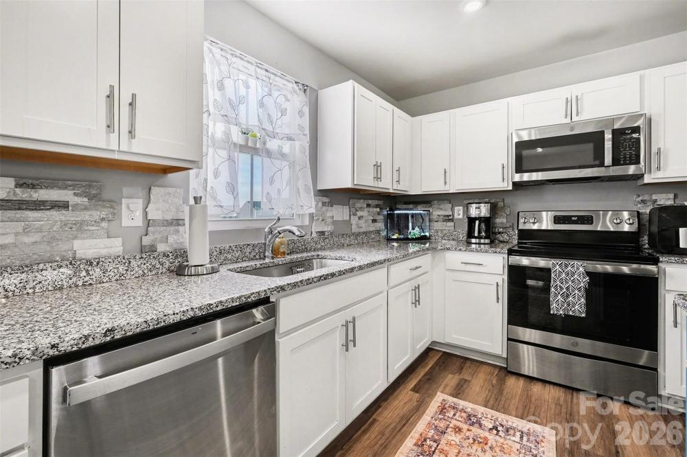 Built in 2021 and thoughtfully designed for modern living, this beautifully maintained two-story home offers nearly 2,000 square feet of bright, open space with 4 bedrooms, 2.5 baths, and a layout that blends comfort with functionality. The main level welcomes you with durable vinyl plank flooring, a spacious living area, and an open-concept flow ideal for everyday living and entertaining. The kitchen is a true centerpiece featuring a large island, pantry storage, and a full stainless appliance package including a refrigerator with ice maker. A dedicated office on the main level provides the perfect space for working from home, studying, or creating a quiet retreat away from the main living areas. Upstairs, the spacious primary suite includes a walk-in closet and an en-suite bath with a relaxing garden tub and separate shower. Additional bedrooms are generously sized, and the convenient upper-level laundry room makes daily routines effortless. Outside, enjoy a level backyard with patio space ready for grilling, play, or relaxing. Located in a neighborhood with HOA community benefits and city water and sewer, this home also includes an attached two-car garage, architectural shingle roof, and energy-efficient central heating and air. A wonderful opportunity for stylish newer construction living with all the space you need.