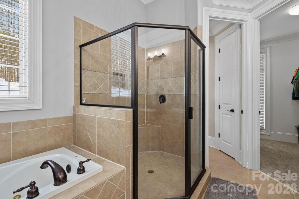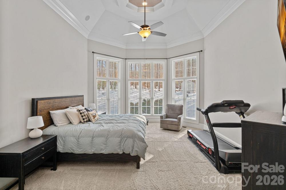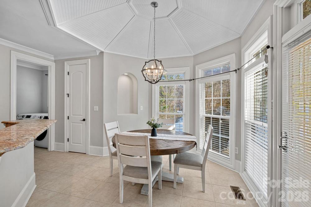Situated on 1.35 private, wooded acres in the highly coveted Winding Forest subdivision, this elegant two-story residence blends timeless design with refined comfort. Known for its rolling topography, mature trees, and close proximity to Lake Norman, Winding Forest offers a setting that truly defines luxury living. Skippers Landing Safe Harbor Marina is just a two-minute drive, providing effortless access to boating, dining, and lake recreation. The main-level primary suite is a true retreat, featuring a tray ceiling, walk-in closet, dual vanities, soaking tub, and an oversized separate shower. Abundant windows throughout the home fill the interior with natural light and frame peaceful views of the surrounding landscape. A dramatic two-story great room with gas log fireplace anchors the home and flows seamlessly into the luxury kitchen, offering expansive counter space, stainless steel appliances, generous cabinetry, a center island, breakfast bar, and pantry designed for both everyday use and entertaining. Formal dining and breakfast areas add versatility, while a main-level laundry enhances convenience. The upper level offers two bedrooms connected by a Jack-and-Jill bath, an additional bedroom with private ensuite, a spacious flex room, and an additional room ideal for storage. A side-load three-car garage complements the home’s thoughtful design. Outdoor living is elevated by a rear porch overlooking a serene, tree-lined setting, where privacy, natural beauty, and proximity to the lake come together to offer a rare and refined lifestyle that must be experienced in person!