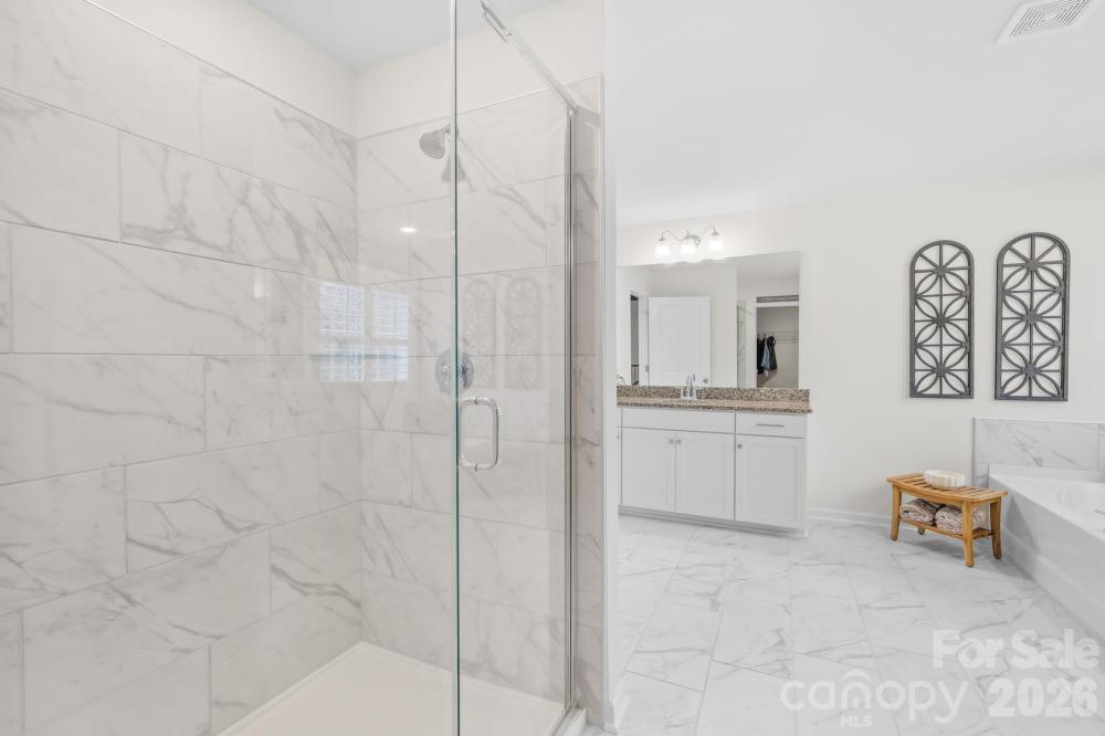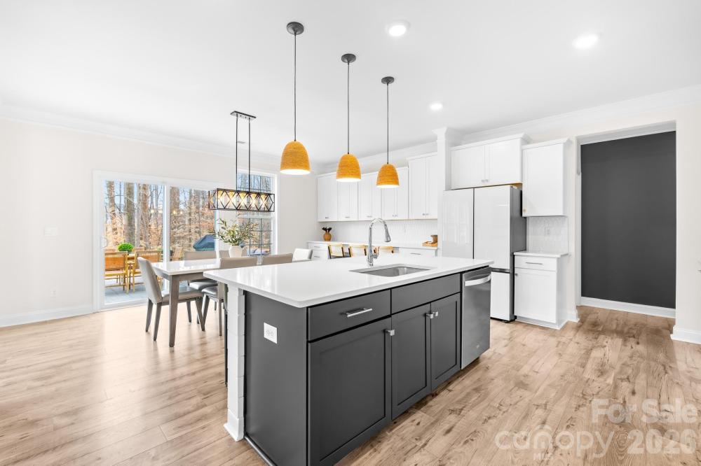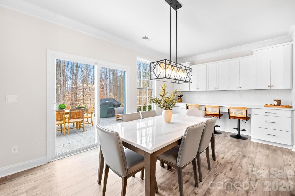 Welcome to this stunning, upgraded, and truly better-than-new Jasmine floorplan, ideally positioned on a private premium 0.44-acre lot in the highly sought-after Enclave at Falls Cove. Only two years old and offering over 4,500 square feet of meticulously maintained living space, this expansive 5-bedroom, 4.5-bathroom residence perfectly combines luxury, functionality, and modern enhancements, creating a home that feels more like a custom build. From the moment you arrive, the home makes a lasting impression with elegant curb appeal, professional landscaping, and extensive exterior improvements designed to enhance both privacy and outdoor living. Inside, soaring ceilings, wide-plank flooring, and a light neutral palette highlight the home’s open, flowing layout. No detail has been overlooked, with over $100,000 in carefully selected upgrades throughout. The main level is thoughtfully designed for both everyday comfort and entertaining, featuring a private study with French doors, a generous dining area, mudroom/drop zone with built-ins, oversized living room with gas fireplace, and a desirable guest suite with a full bath. The gourmet kitchen serves as the centerpiece of the home, showcasing custom cabinetry, upgraded quartz countertops, an oversized island, walk-in pantry, breakfast area, custom wood detailing, and an impressive 11-foot kitchen extension complete with three built-in desk spaces — a rare and highly functional addition. Upstairs, the home continues to impress with abundant storage, a versatile loft area, laundry room, three spacious secondary bedrooms with walk-in closets, and an oversized primary retreat featuring a spa-inspired en-suite bath, expansive sitting room, and oversized walk-in closet. Step outside to your private backyard oasis, where extensive hardscaping and landscaping create a truly exceptional outdoor environment. Highlights include a custom 500+ square foot patio with built-in fireplace and retaining wall, decorative rock accents, more than 60 Arbor Vitae privacy trees, wrought iron perimeter fencing, and a backyard extension exceeding 30 feet — offering space and seclusion rarely found in this community. An irrigation water meter has already been paid for with the town (not yet installed). Additional upgrades further elevate the home’s value and convenience, including an epoxy-coated 3-car garage with overhead storage rack system, Tesla wall charger, and Aquasana whole-house water filtration system. Interior enhancements include smart home features, an ADT security system with window and door coverage, front and rear exterior cameras, designer light fixtures, custom wood accent walls, upgraded ceiling fans, and more. Residents enjoy resort-style amenities including a community pool, clubhouse with fitness center, playground, dog park, open green spaces, and miles of scenic wooded trails. The community’s prime location offers easy access to shopping, dining, Lake Norman State Park, and highly rated Iredell-Statesville Schools. For buyers seeking space, privacy, and high-end finishes in one of the area’s most desirable neighborhoods, this exceptional Jasmine layout presents a rare opportunity that truly stands apart.